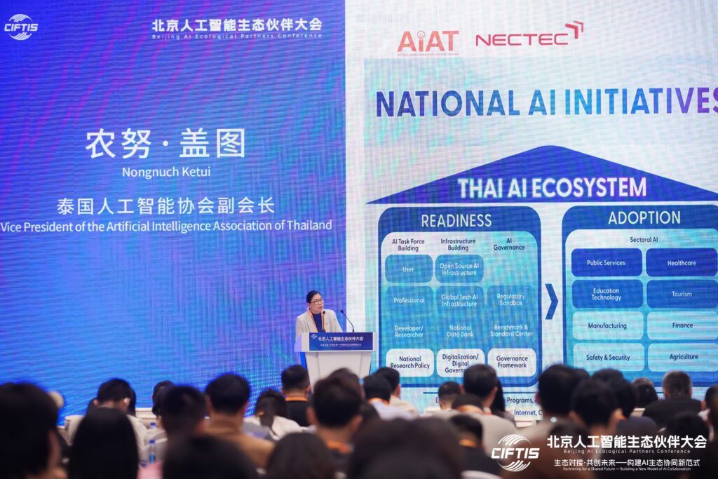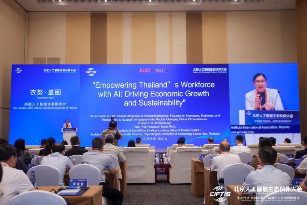 สมาคมปัญญาประดิษฐ์ประเทศไทย (AIAT) ก้าวสู่เวทีนานาชาติอีกครั้ง ในงาน The China International Fair for Trade in Services (CIFTIS) 2025 ณ กรุงปักกิ่ง สาธารณรัฐประชาชนจีน ระหว่างวันที่ 9-11 กันยายน 2568 โดยได้รับเกียรติจาก The UNITAR Global SDGs and Leadership Development Center (Singapore) และ Global Youth Development Alliance (France) เชิญ ผศ.ดร.นงนุช เกตุ้ย อุปนายกสมาคมปัญญาประดิษฐ์ประเทศไทย เข้าร่วมบรรยายและแลกเปลี่ยนในเวทีนานาชาติ