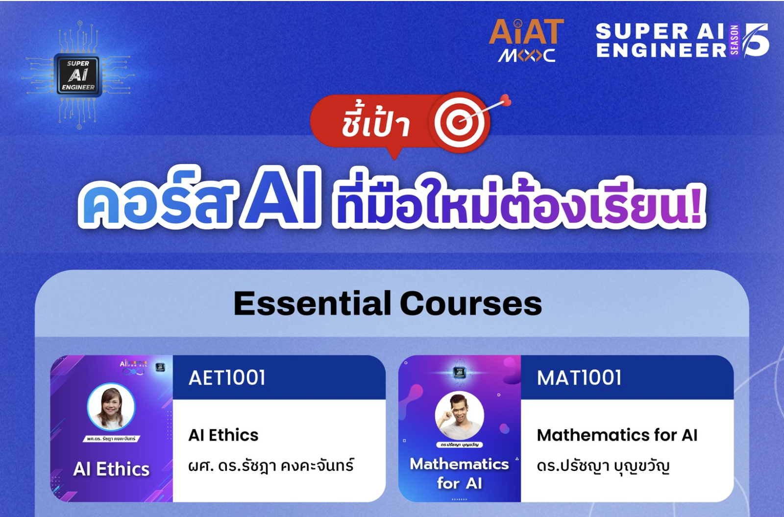 เรียนฟรี! ปูพื้นฐานแน่น ๆ แล้วก้าวสู่โลก AI ไปด้วยกัน! มาอัปสกิล AI ไปกับ AIAT MOOC เสริมทักษะใหม่ ให้คุณเก่งขึ้นแบบก้าวกระโดดพร้อมก้าวสู่โลก AI อย่างมั่นใจAIAT MOOC มีหลักสูตรเรียน AI ออนไลน์ฟรีมากกว่าร้อยคอร์ส ตั้งแต่ระดับพื้นฐานไปจนถึงระดับสูง นอกจากจะอัปสกิล