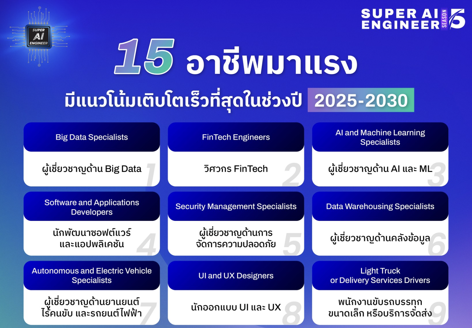 15 อาชีพที่มีแนวโน้มเติบโตเร็วที่สุดในช่วงปี 2025-2030