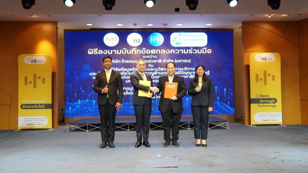 NT เดินหน้าความร่วมมือ AIAT, IISI และ AI-Next ผลักดันพัฒนาองค์ความรู้และงานวิจัยหวังสร้างบุคลากรเอไอ พร้อมต่อยอดนวัตกรรมโซลูชันด้านเอไอ ยกระดับขีดความสามารถด้าน AI ของประเทศไทยสู่มาตรฐานสากล
