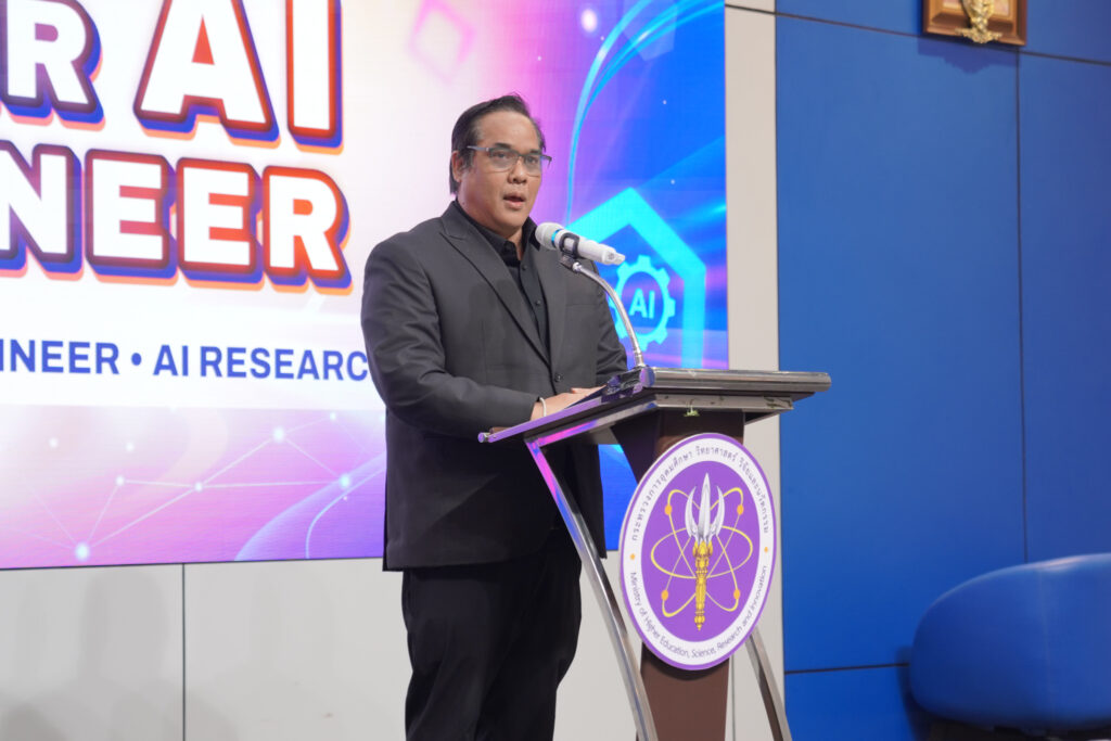 ได้กล่าวรายงานความสำเร็จของโครงการ Super AI Engineer Season 5 ซึ่งประกอบด้วยกิจกรรม 3 กลุ่ม ได้แก่ AI Innovator, AI Engineer และ AI Researcher
