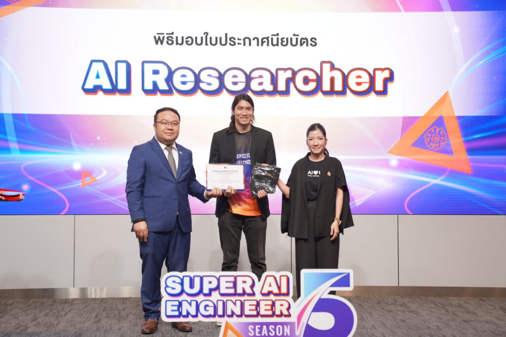 “โครงการ Super AI Engineer เป็นพื้นที่การเรียนรู้ที่เปิดโอกาสให้ผู้สนใจจากหลากหลายสาขาได้พัฒนาทักษะด้าน AI อย่างเข้มข้น ผ่านการเรียนรู้เชิงปฏิบัติและการทำงานกับโจทย์จริงจากภาคอุตสาหกรรม ทำให้ผู้เข้าร่วมโครงการสามารถต่อยอดสู่การทำงานจริงในสายงาน AI และสร้างนวัตกรรมที่เกิดประโยชน์ต่อประเทศ ซึ่งในโครงการ Super AI Engineer Season 5 ที่แบ่งเป็น 3 Track คือ AI Engineer, AI Innovator, และ AI Researcher มียอดผู้สมัครเข้าเรียนรู้ในระดับ Level 1 สูงถึง 12,865 คน ทำให้มีจำนวนผู้ลงทะเบียนสะสมตลอดทั้ง 5 season มากกว่า 45,800 คน โดยใน season 5 มีผู้ที่ผ่านเข้าสู่ระดับเข้มข้นหรือ Level 2 รวมกันกว่า 1,607 คน และสามารถผลักดันบุคลากรจนบรรลุเกณฑ์ Level 3 ได้สูงถึง 1,224 คน”